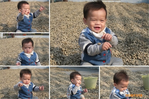 好喜歡這幾張相片十一個多月時候在婆家拍的那時候正是土豆收成的期間小宇就坐在地上玩花生玩著、玩著就吃起來了不過,好像太硬了,表情不大妙